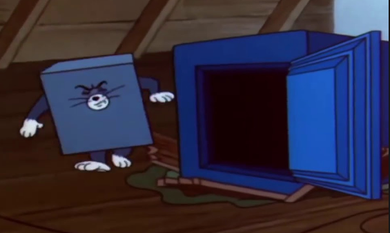 - Tom in a pressed vase state after gettings bonked into a safe.