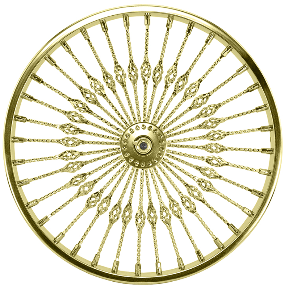 20" x 32mm Steel Front Wheel Twisted Cage 36 Spoke Gold