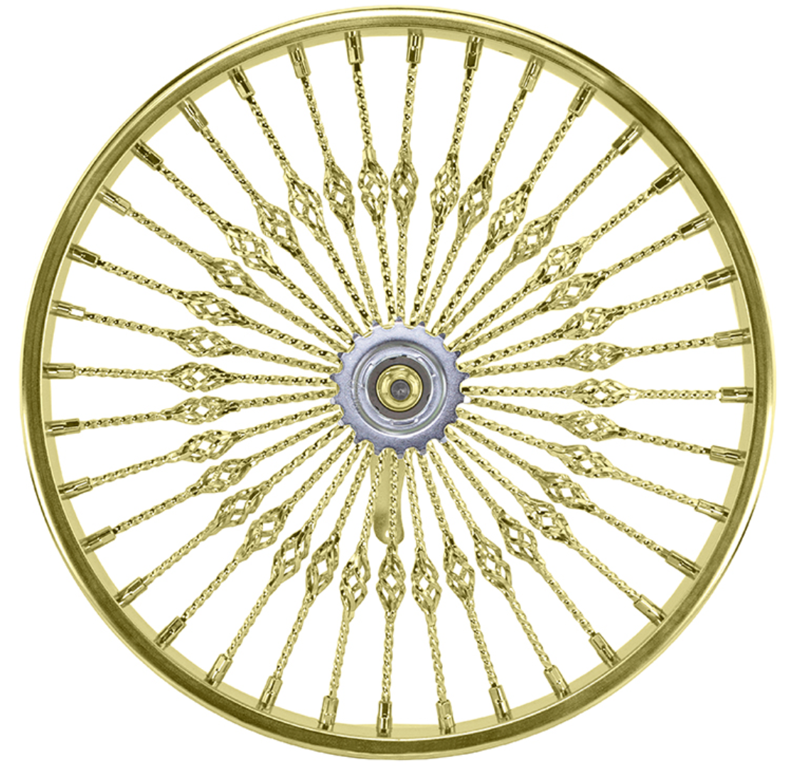 20" x 32mm Steel Rear Wheel with Coaster Brake Twisted Cage 36 Spoke 8G Gold 3/8 Axle Single Wall Chrome.