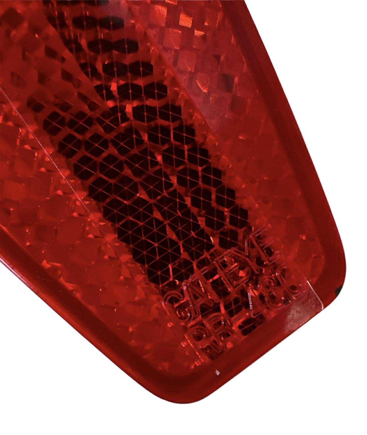 RR-480-WMR. Red reflector, white body, wide angle rear reflector. For use on Schwinn, Raleigh and other pinnacle vintage bicycle brands.