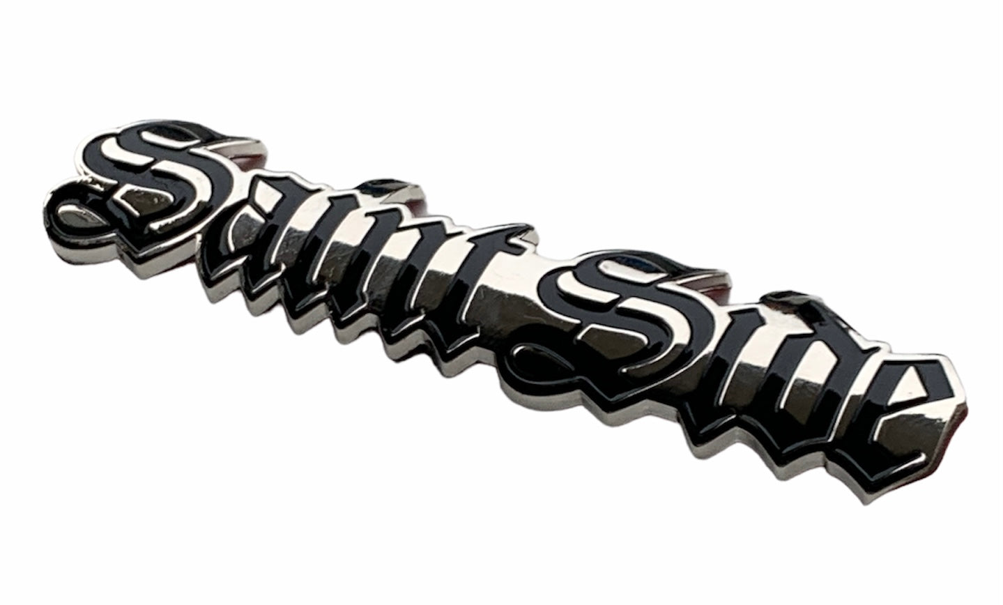 Saint Side Old English Logo Black / Chrome Metal Badge