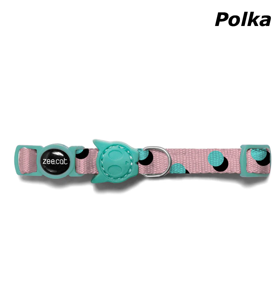 Zee.Cat collars are made of super soft polyester and are one size fits all. The buckle is a breakaway buckle that automatically opens if your cat gets stuck.