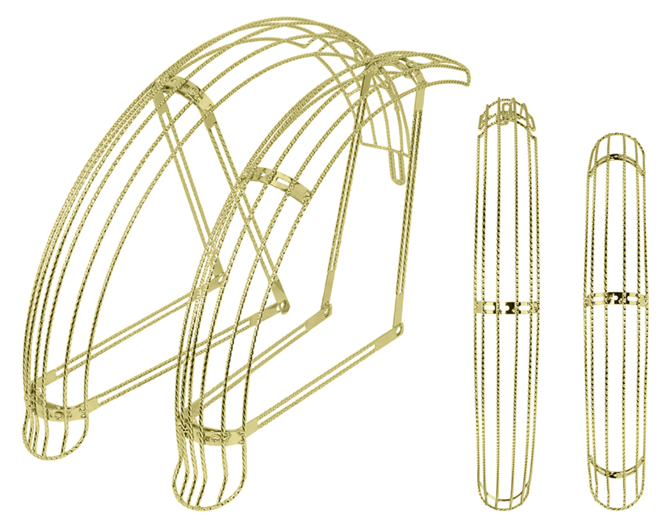 20" Flared Twisted Adjustable Fender with 4 Braces in Full Set Gold
