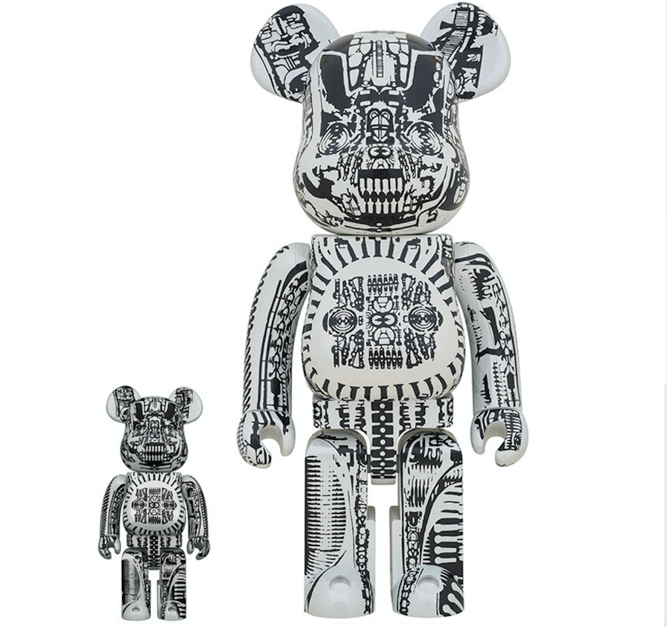 BE@RBRICK 100% and 400% Set H.R. Giger White Chrome