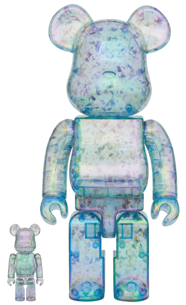 Anever returns for the 3rd iteration of the transluscent, chrome finished suspended pattern brilliance in Bearbrick Form. Featuring a blue-ish tint, new floral-petal-esque suspended designs, its truly the nicest iteration yet.