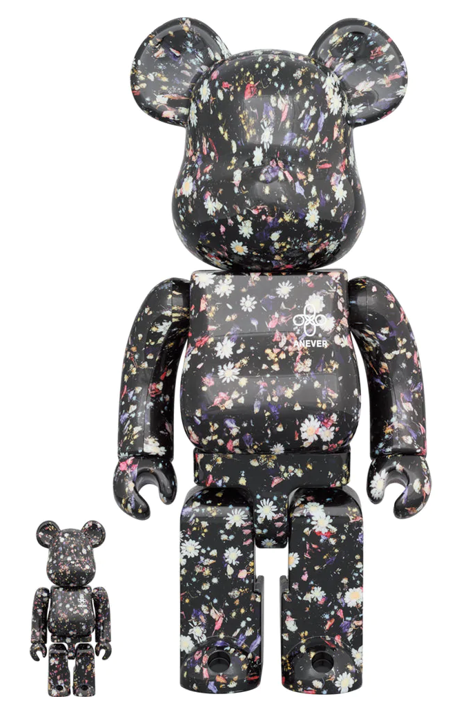 Onward and Anrealage continue their collaboration with Anever, the embodiment of two concepts of time, a moment (A NEVER) and eternity (AN EVER). Their collection includes flower motifs that correspond to months of the year, and the language of flowers, with a theme that symbolizes change. After great response to their first releases their new Bearbrick is emblazoned with a continuous flower theme, this time on a black Bearbrick backdrop, again with hydro-printing technology, absolutely every bear is unique giving each owner, a 1 of 1 piece.