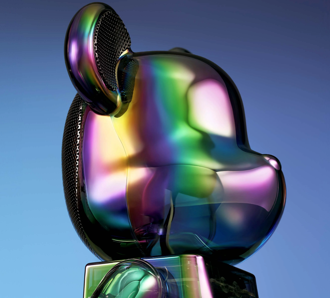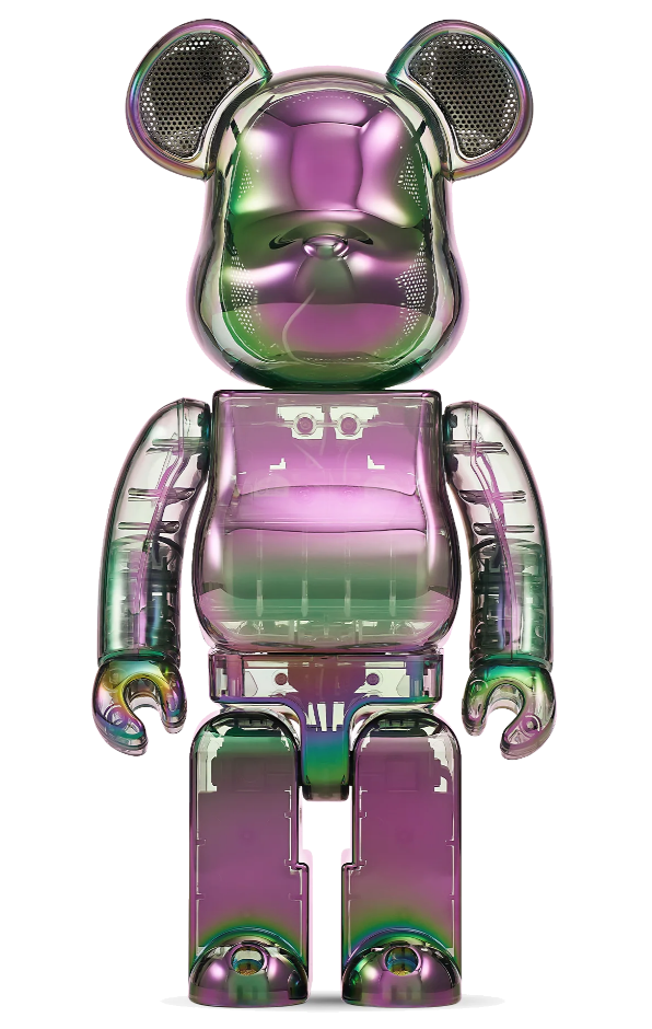 Experience the unique optical effect of the transparent black BE@RBRICK AUDIO with a strong iridescent finish, drawign inspiration from the ethereal beauty of the Northern Lights.
