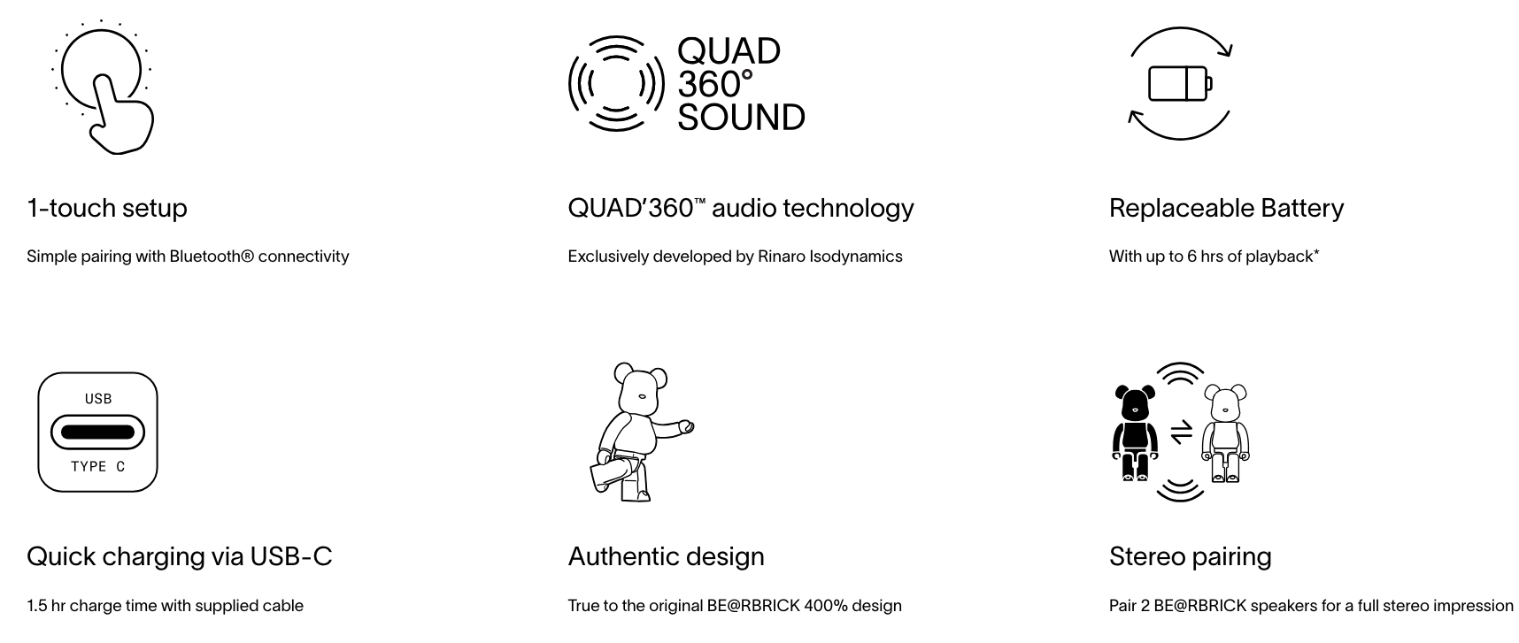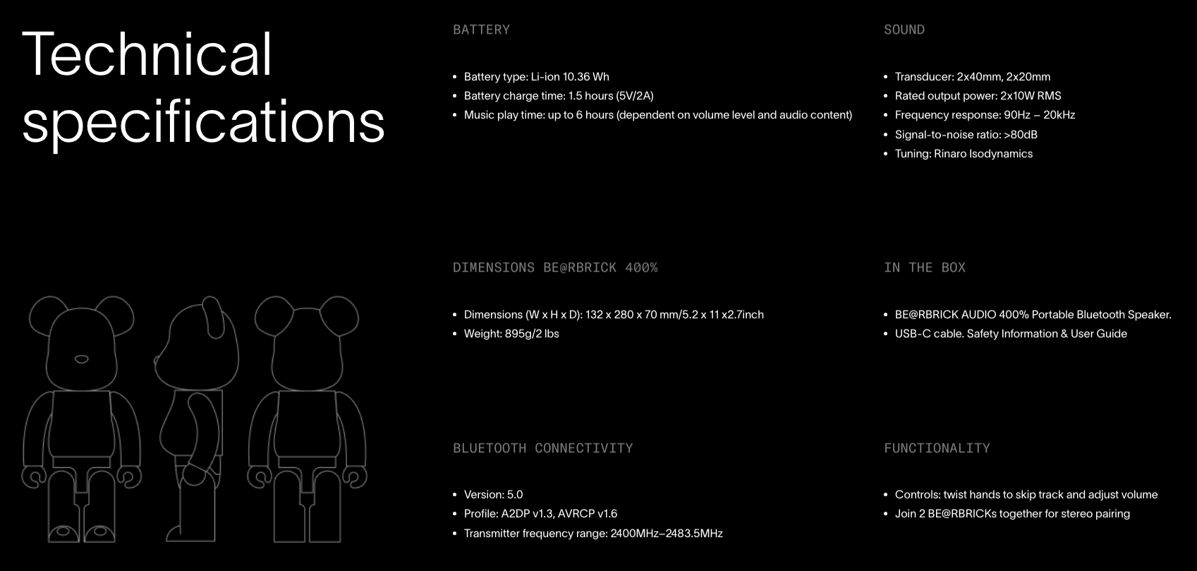 Over 20,000 hours of engineering time, and 214 newly designed parts, the BE@RBRICK AUDIO 400% Portable Bluetooth Speaker delivers an exciting new experience to BE@RBRICK fans.