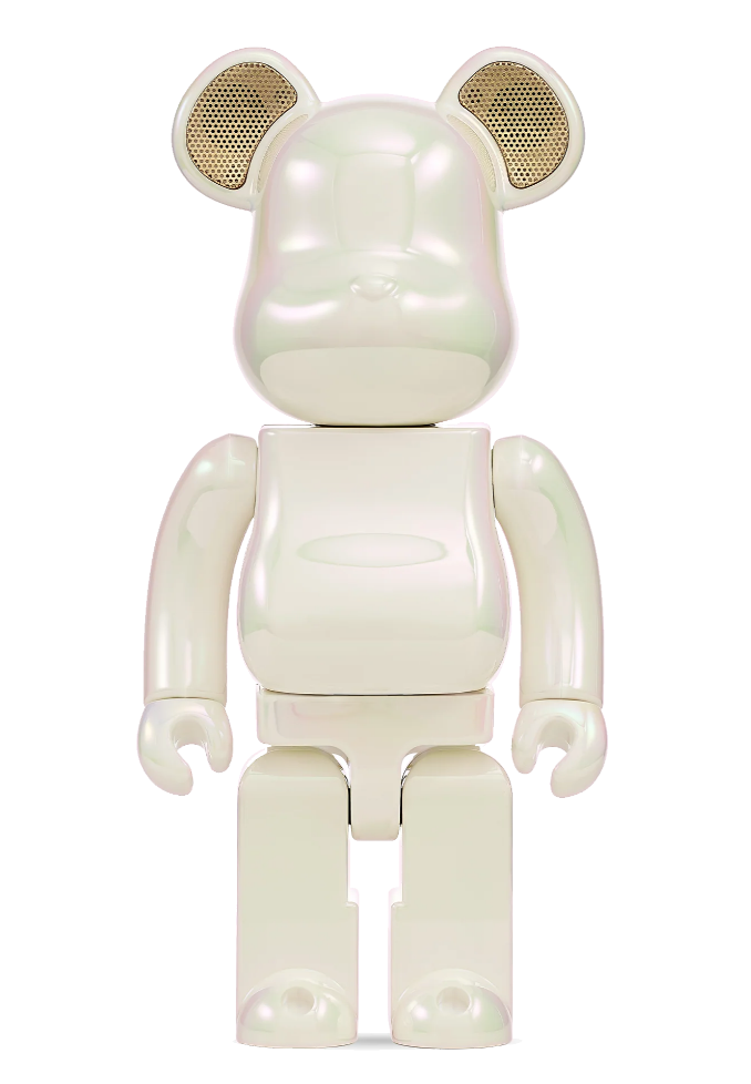 The white iridescent colorway of BE@RBRICK AUDIO 400%, with golden ear grills, evokes the warmth and shimmer of desert mirages. This design makes it as stunning to behold as it is to listen to.