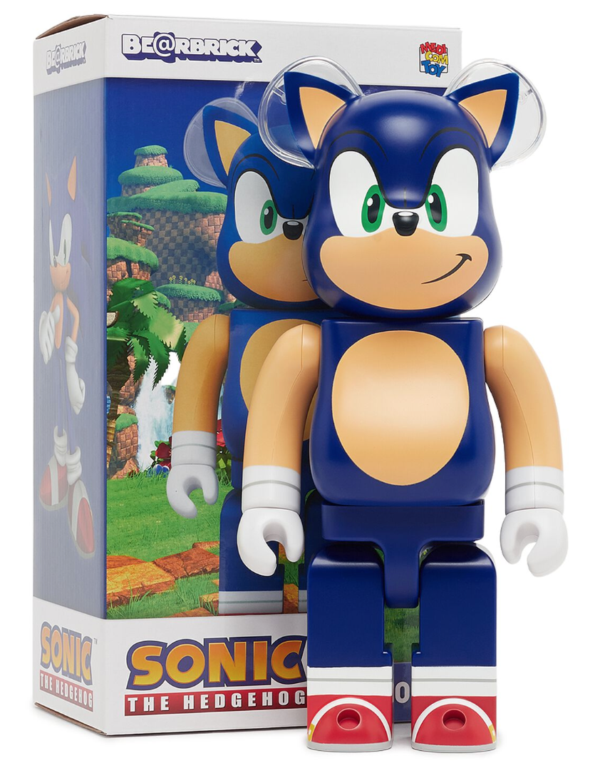 Sonic The Hedgeog, from the classic Sega video game finally immortalised as a Bearbrick, and done perfectly. Full body colour, painted hedgehog ears on the clear bear finish. Box graphic comes correct too with the first stage background. Video game collector, Sonic fan, or just a retro lover at heart, this ones for you.