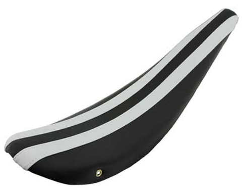 26" Banana Saddle Seat Vinyl Black With White Vinyl Stripes