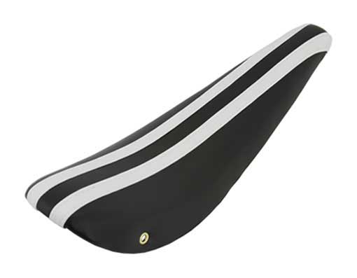 20" Banana Saddle Seat Vinyl Black with Two White Stripes