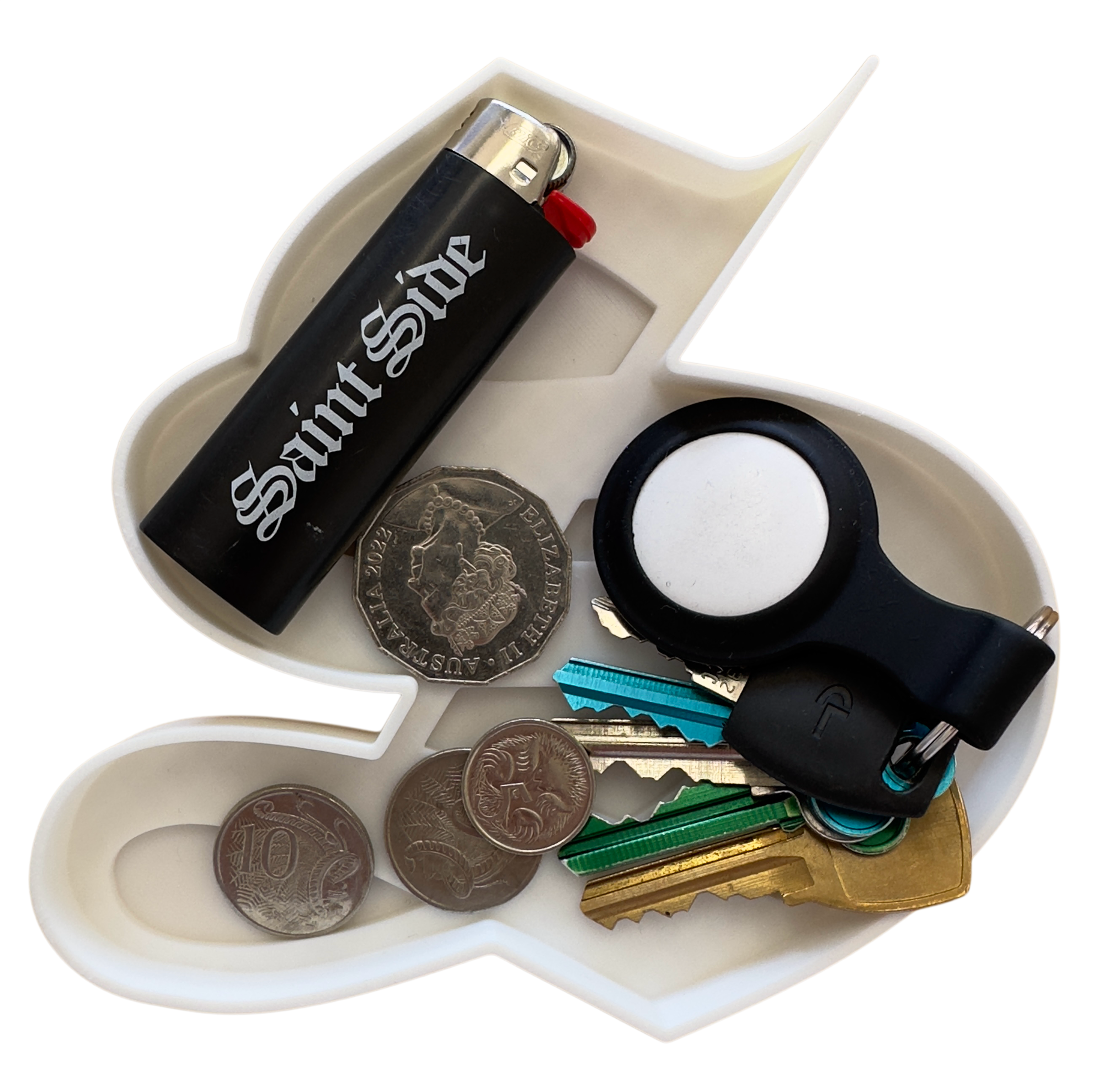 The Old English S keep sake tray measures 14cm tall by 14cm wide with a 16mm wall height, designed for all of your daily in pocket knick knacks.