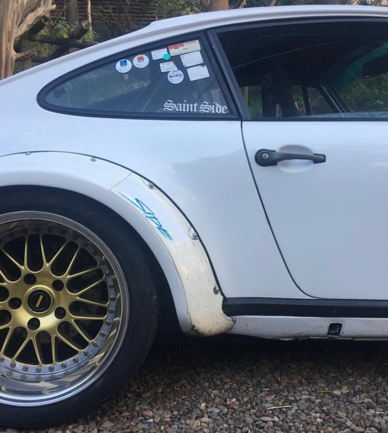 Our Saint Side Old English Vinyl is water resistant and UV protected, designed for cars but can be applied to anything really.
