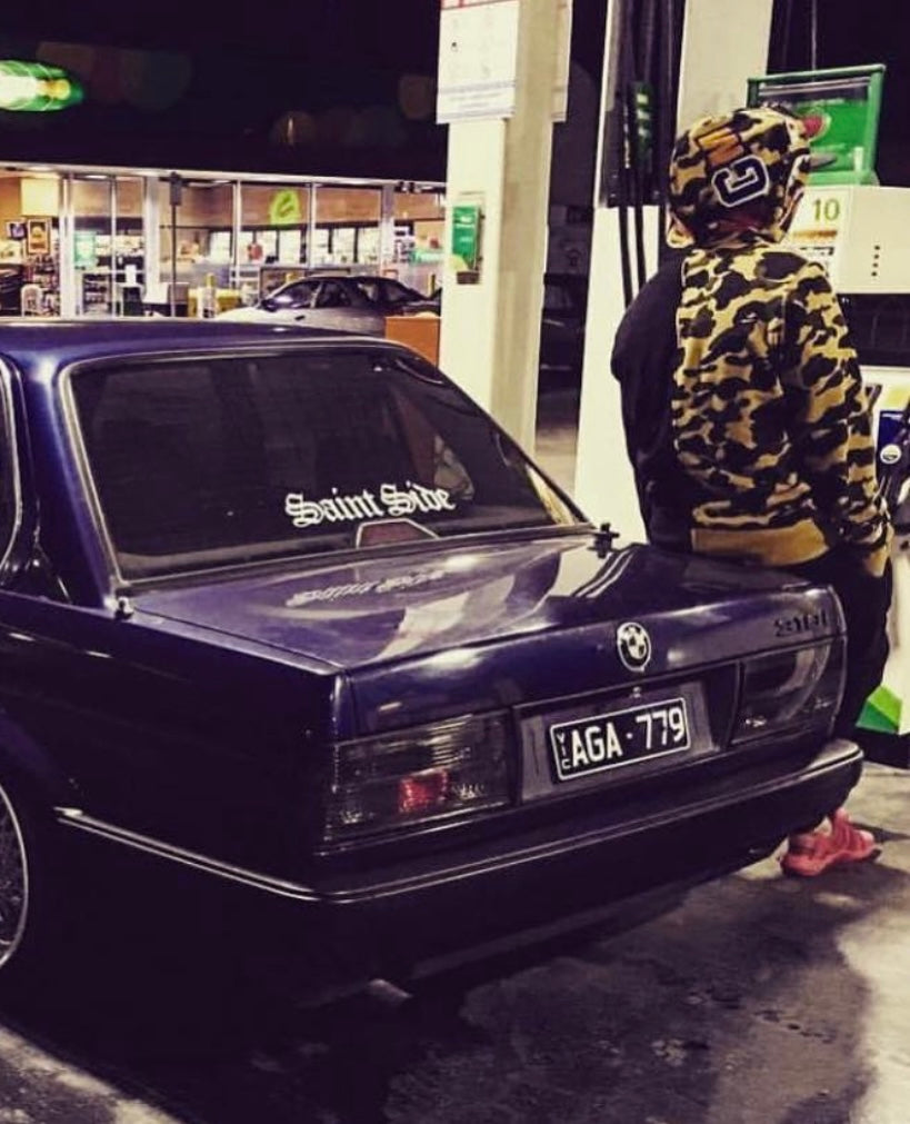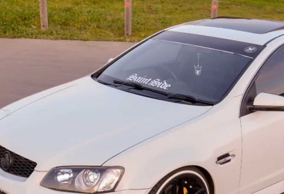 Our Saint Side Old English Vinyl is water resistant and UV protected, designed for cars but can be applied to anything really.