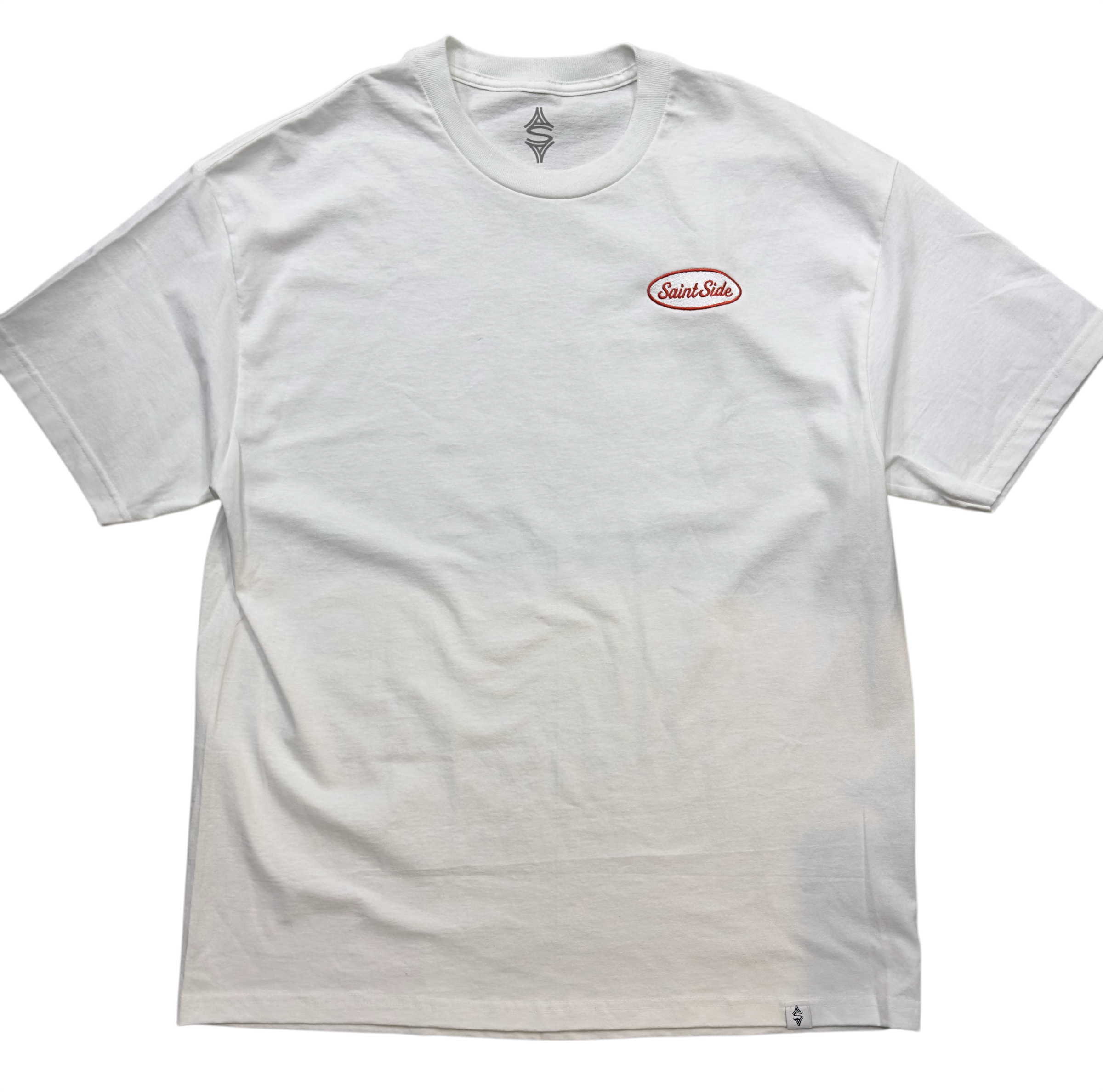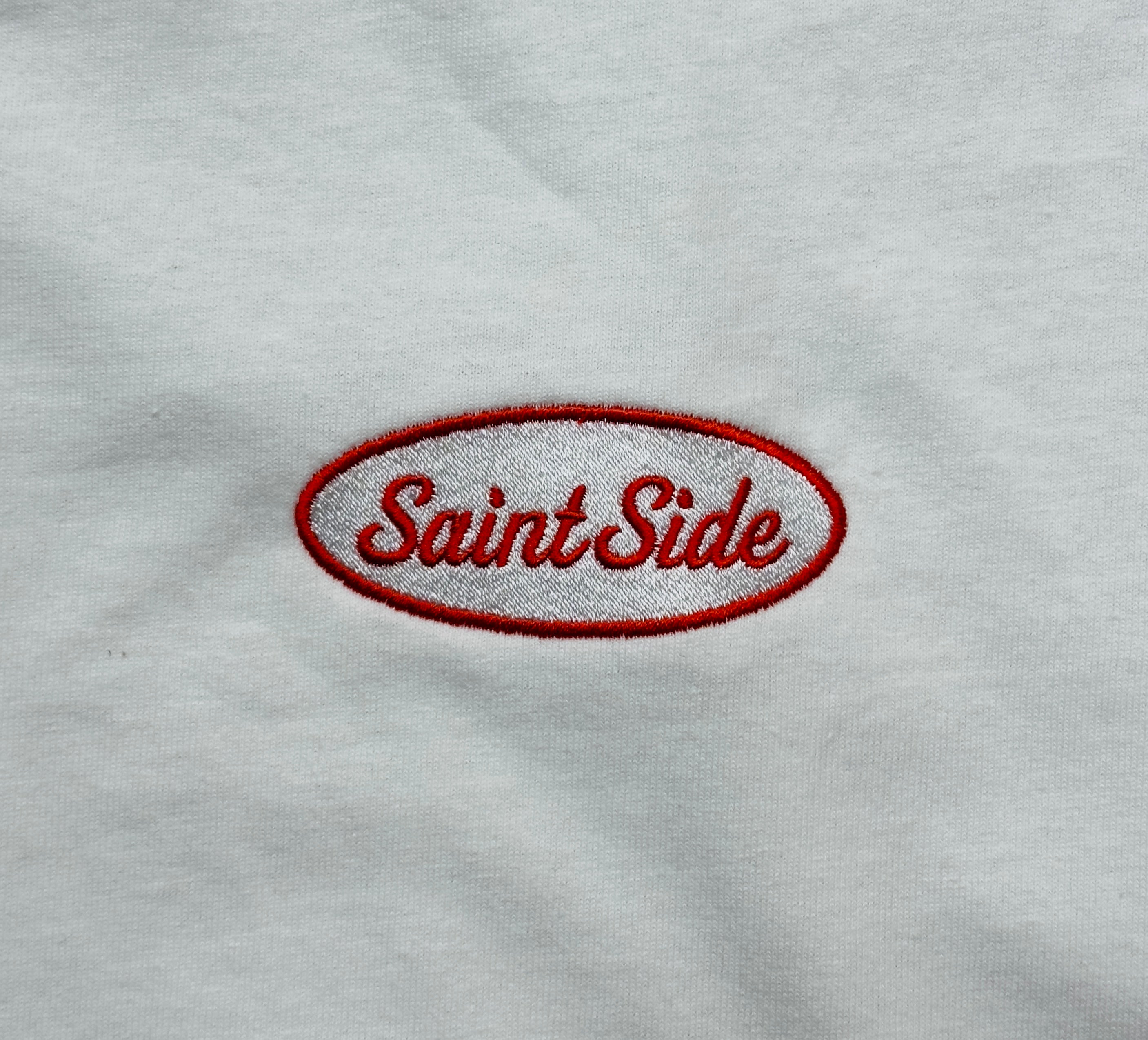 The history of the embroidered red border, red name, white body patch dates back over 100 years to "service" workwear. Commonly seen through out gas station, and service station attire, although it does date back further to rail road wear.